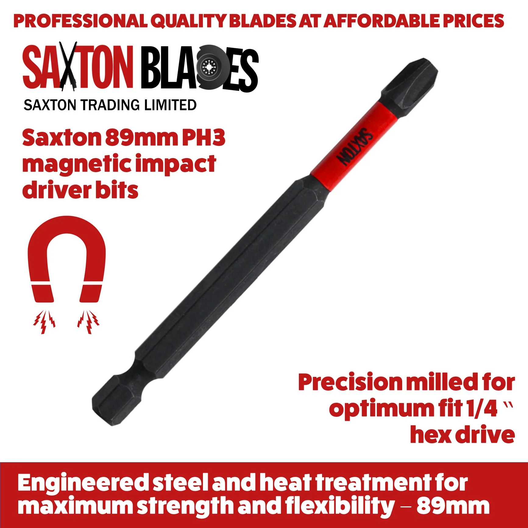 - [INCLUDED COMPONENTS] 5x Saxton - 89mm magnetic impact driver bits PH3 - supplied in a reusable storage pouch
