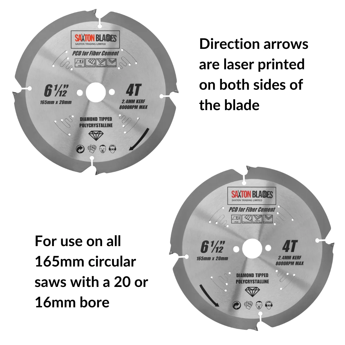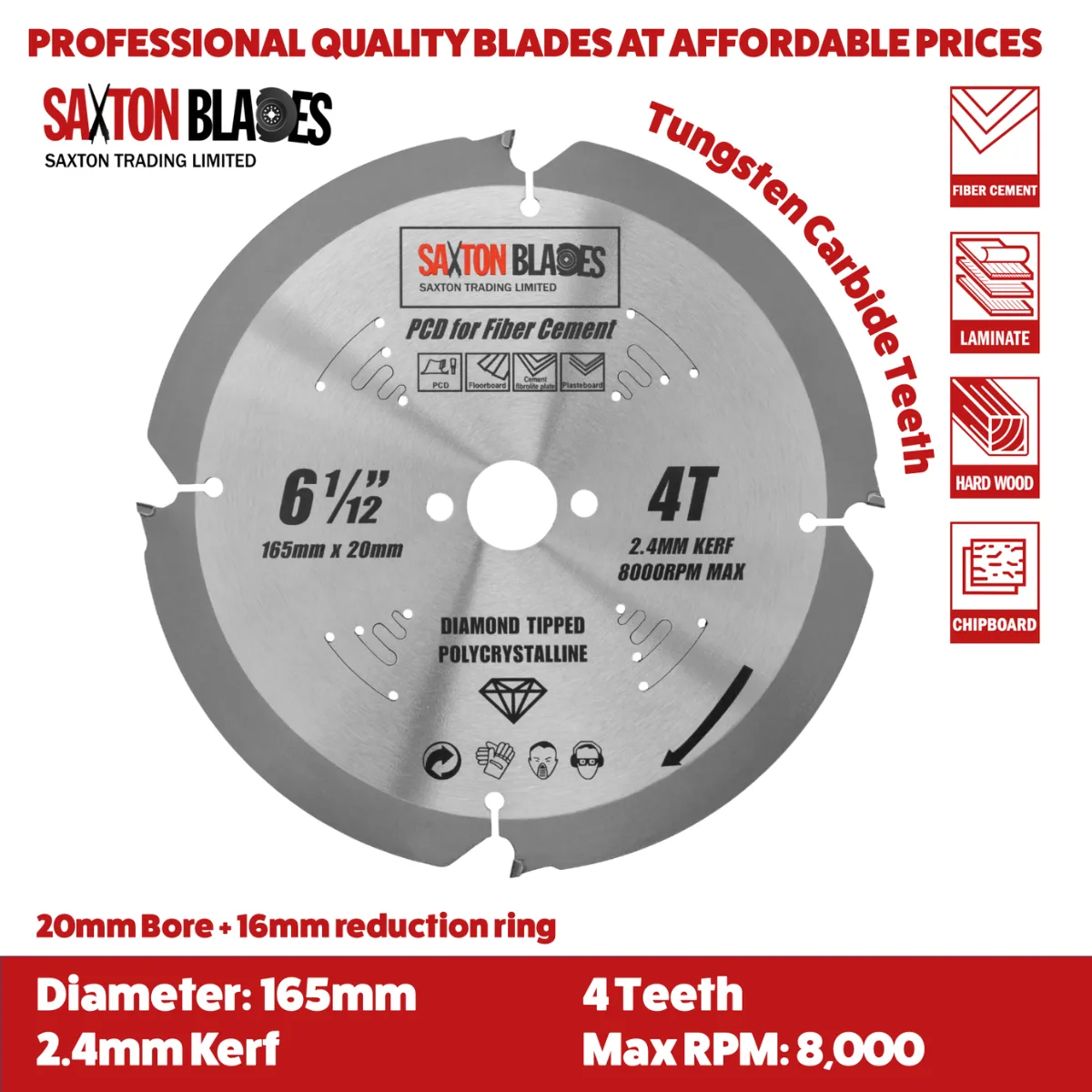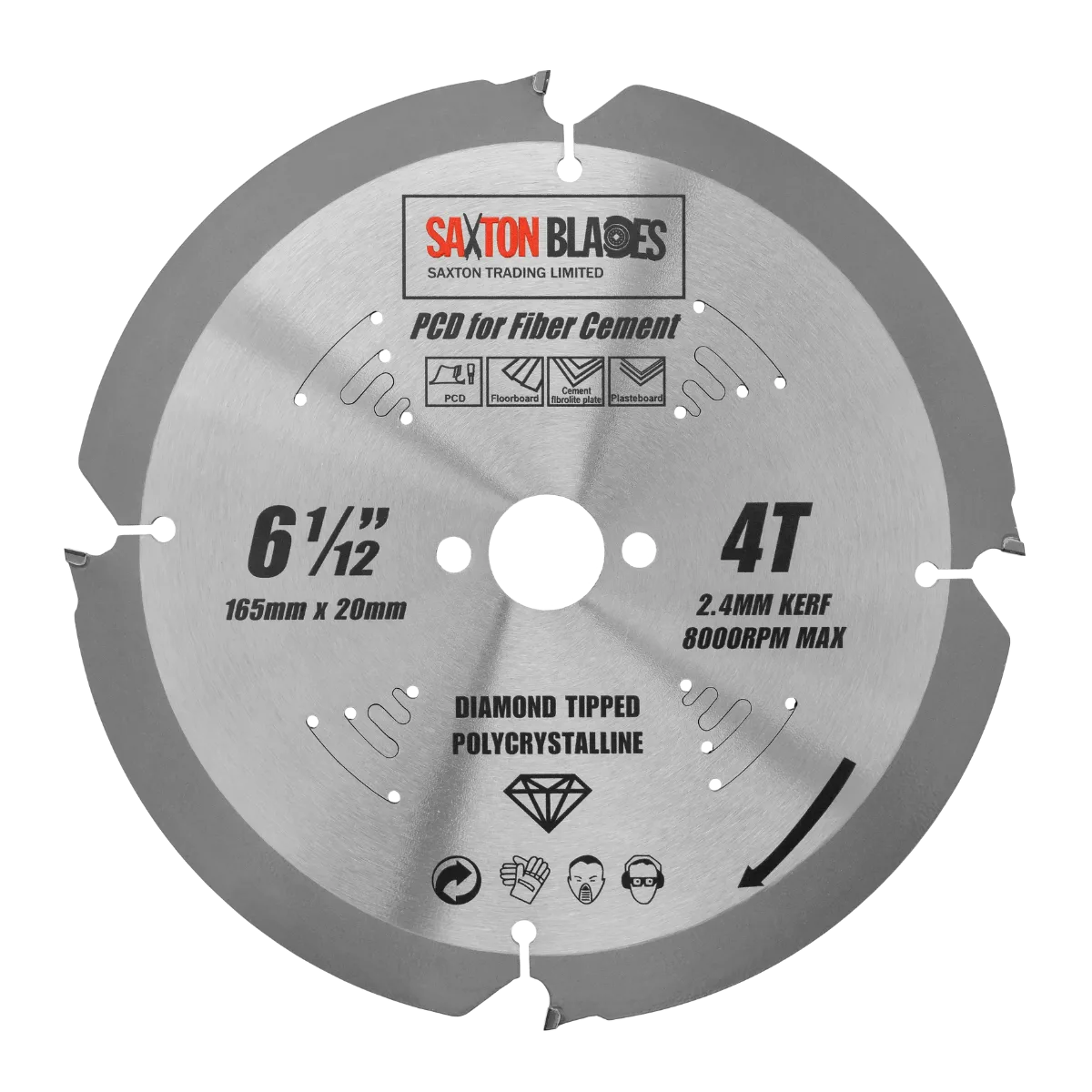 PCD Circular Saw Blade, 165mm x 4 Teeth Polycrystalline Diamond Tipped Fibre Cement Board, Hard Materials