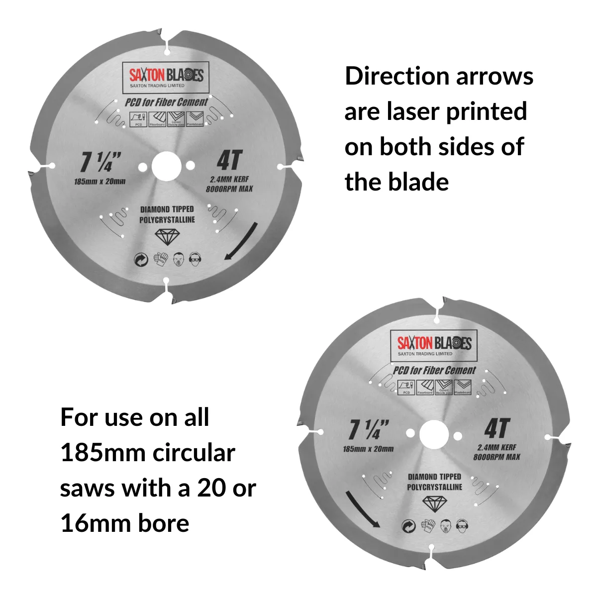 PCD Circular Saw Blade 185mm x 4T x 20mm Bore Polycrystalline Diamond Tipped (16mm ring)