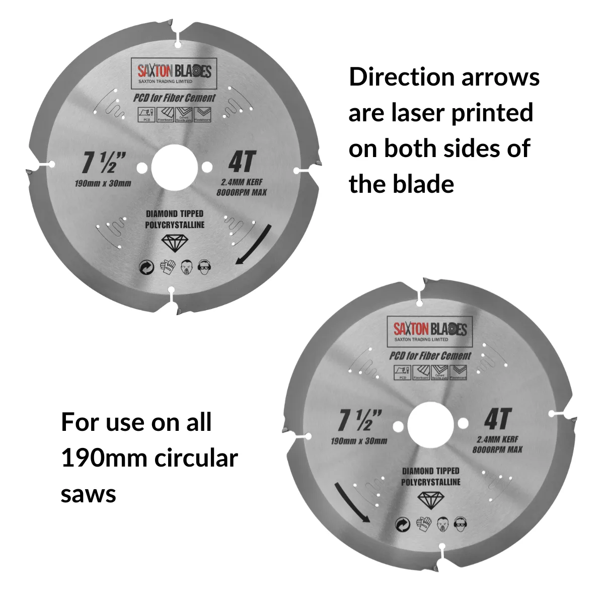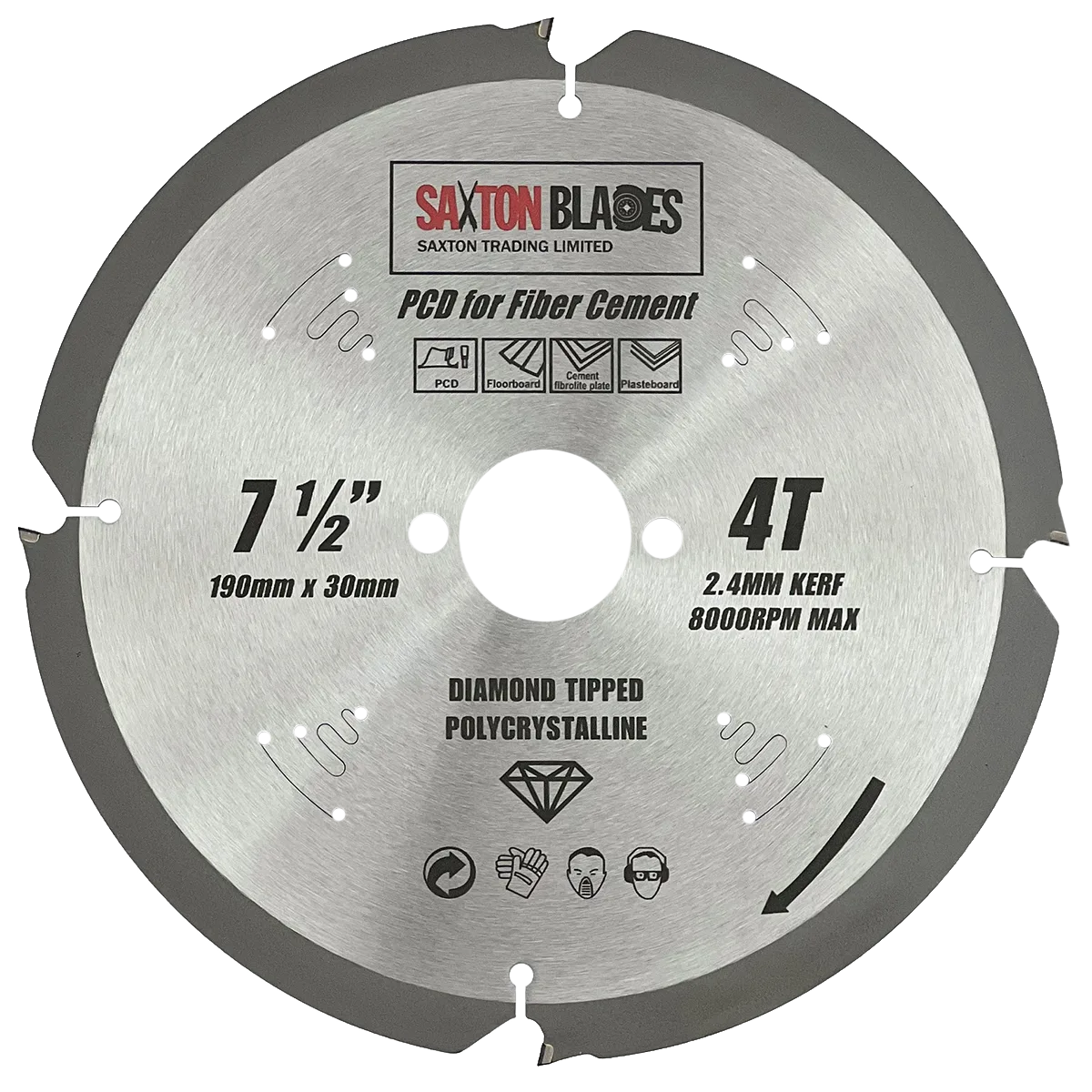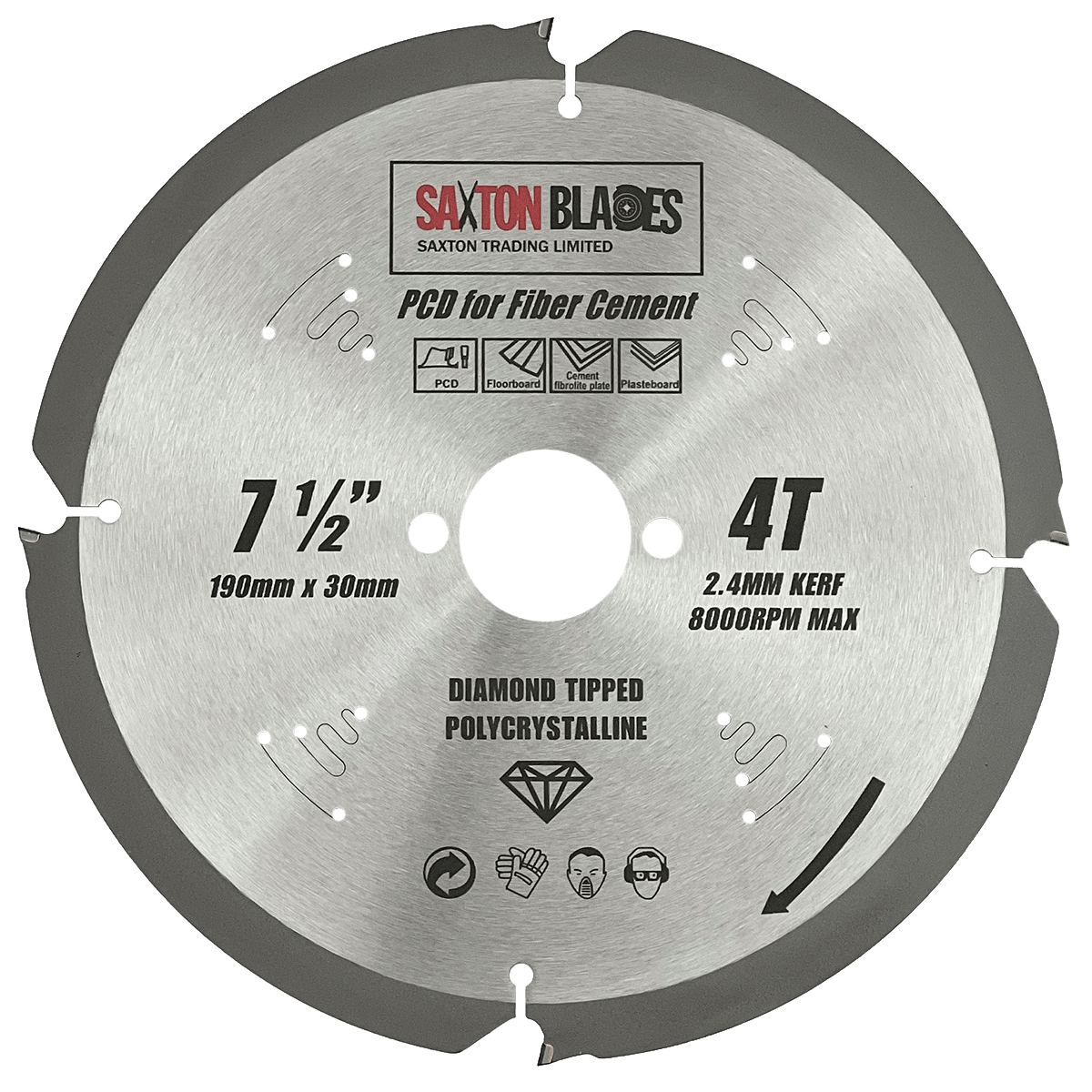 - [FEATURES] - Saxton PCD blades have a longer lifespan thanks to polycrystalline diamond (PCD) tips. The longer gullet on these PCD blades improves material removal while allowing for faster cutting and less dust.