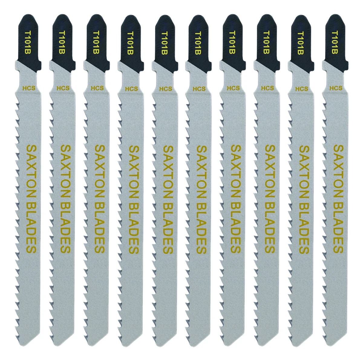 - [MATERIAL] - The T101B jigsaw blade is constructed from durable High Carbon Steel (HCS), these blades are designed to deliver reliable performance on softwood, chipboard, wood core plywood, fibreboards, and plastics/epoxy.
