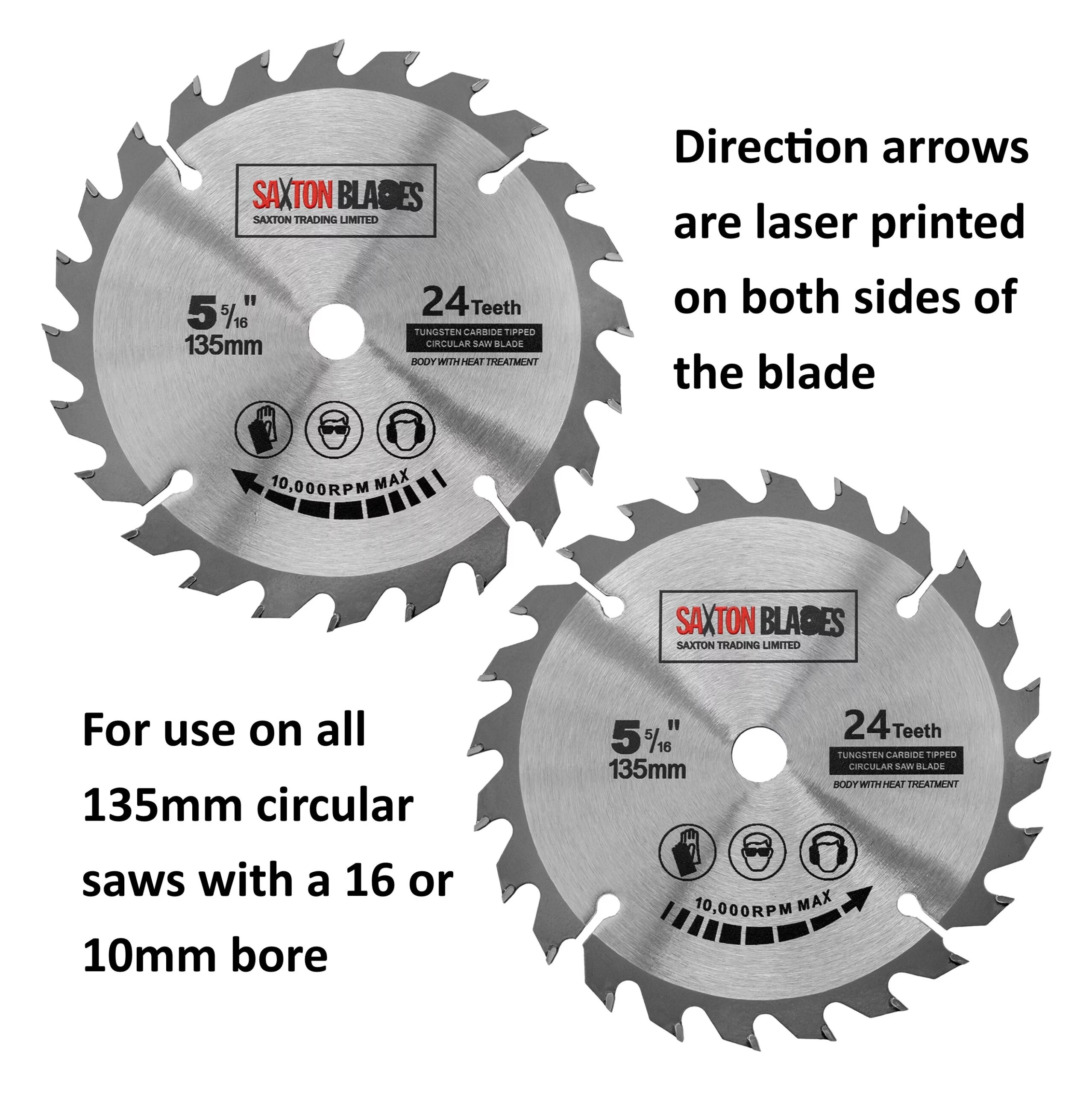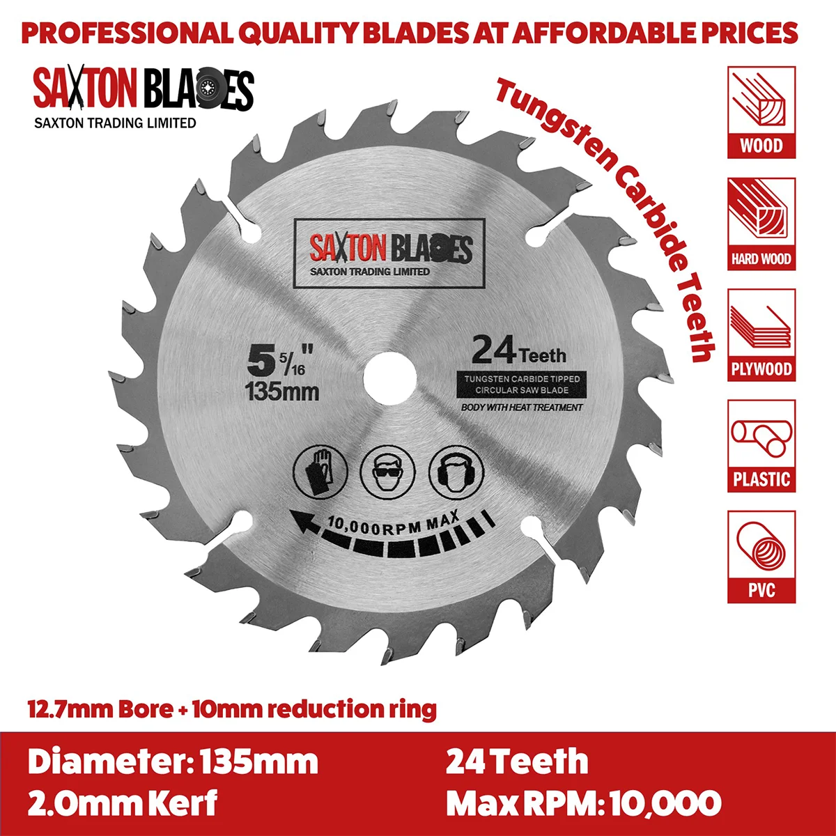 - [DIMENSIONS] - 135mm Diameter - 24 teeth – 12.7mm bore (10mm reduction ring included)- 2.0mm Kerf (thickness of cut)