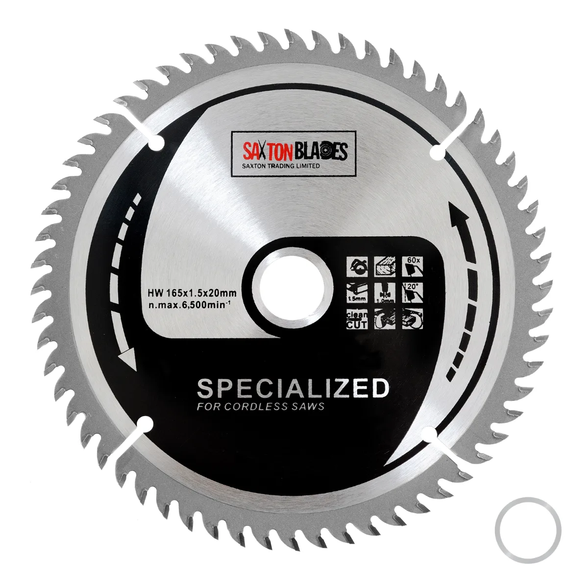 - [DIMENSIONS] – 165mm Diameter – 60 teeth – 20mm bore (15.87mm reduction ring included) – 1.5mm Kerf (thickness of cut)