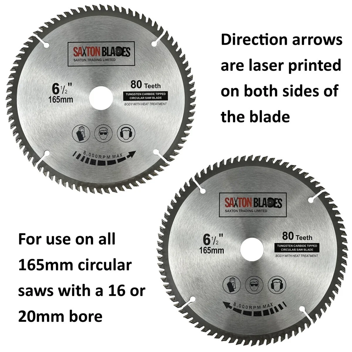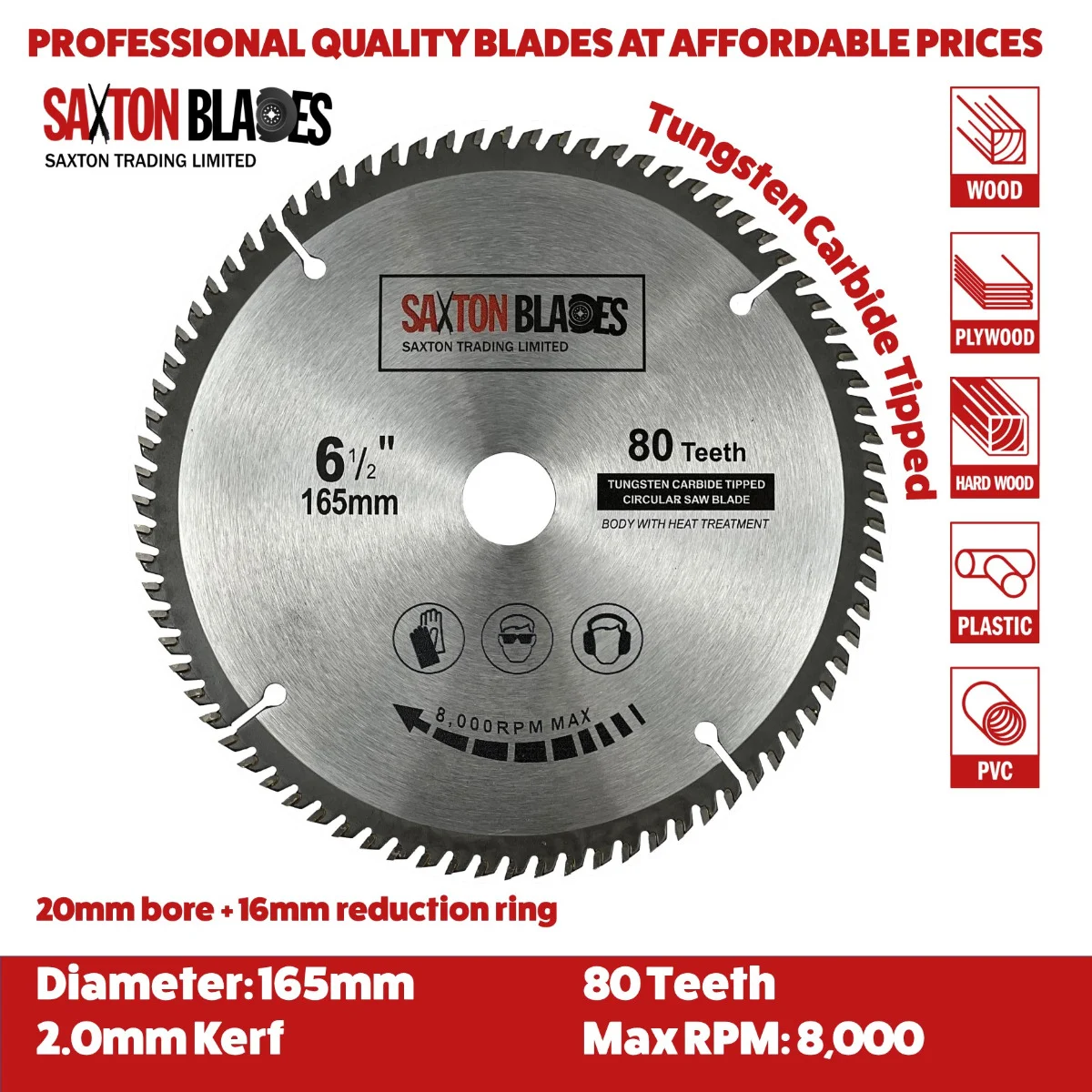 - [DIMENSIONS] - 165mm Diameter – 80 teeth - 20mm bore (16mm reduction ring included) - 2.0mm Kerf (thickness of cut)