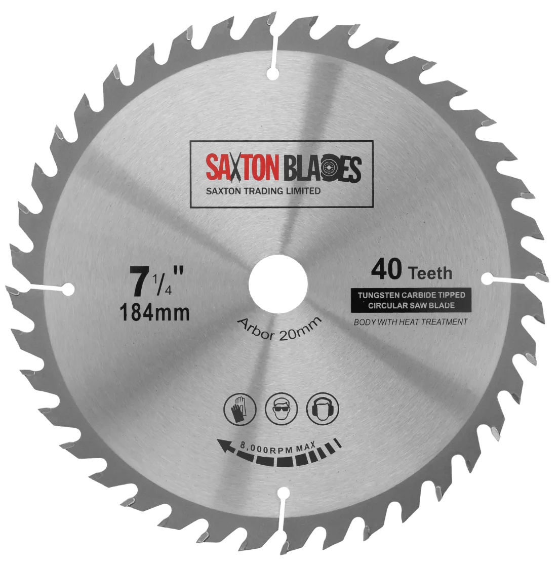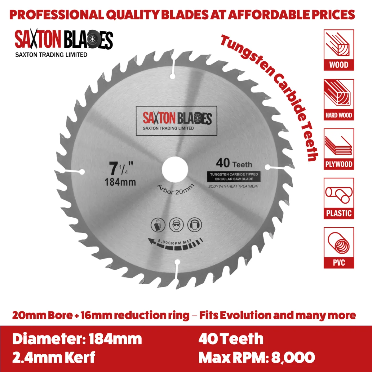 - [DIMENSIONS] - 184mm Diameter – 40 teeth - 20mm bore (16mm reduction ring included)- 2.4mm Kerf (thickness of cut)