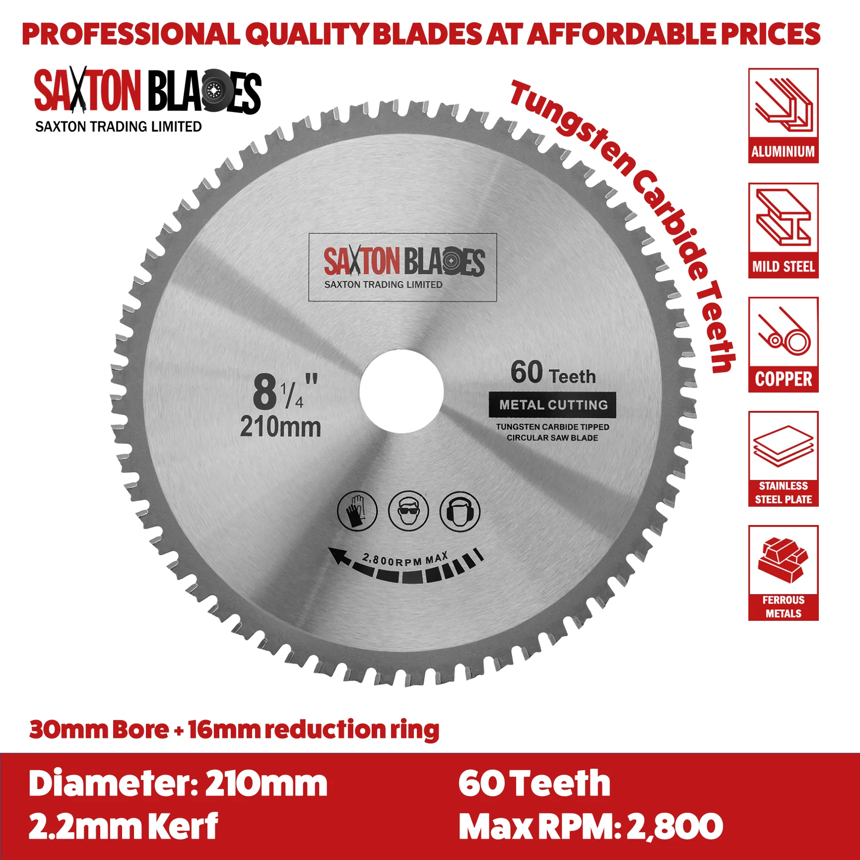 TCT Circular Blade 210mm x 60T Metal Cutting x 30mm Bore