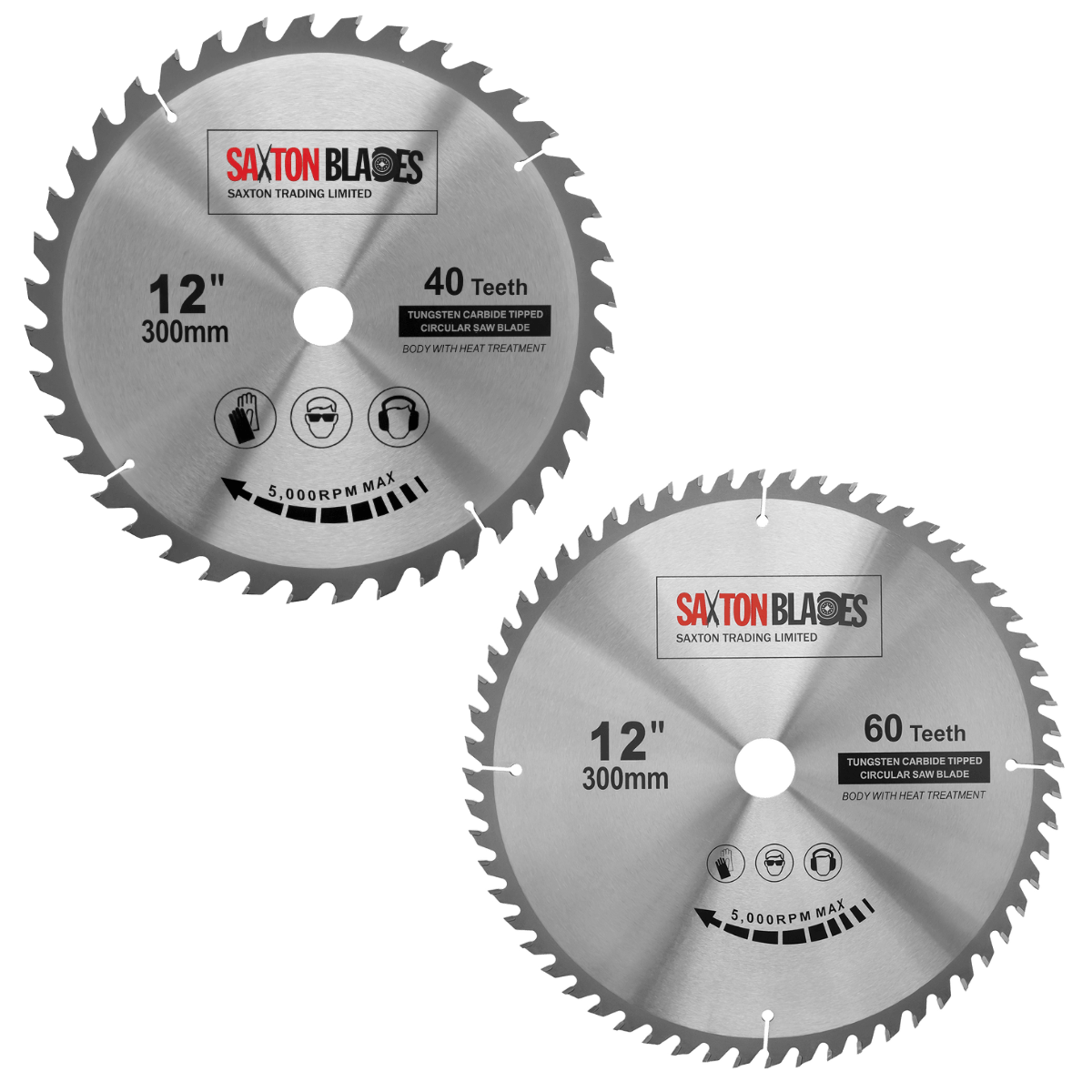 - [DIMENSIONS] - 300mm Diameter - 40 & 60 teeth - 30mm bore (16, 20 and 25mm reduction rings included) – 3.0mm Kerf (thickness of cut) – Pack of 2