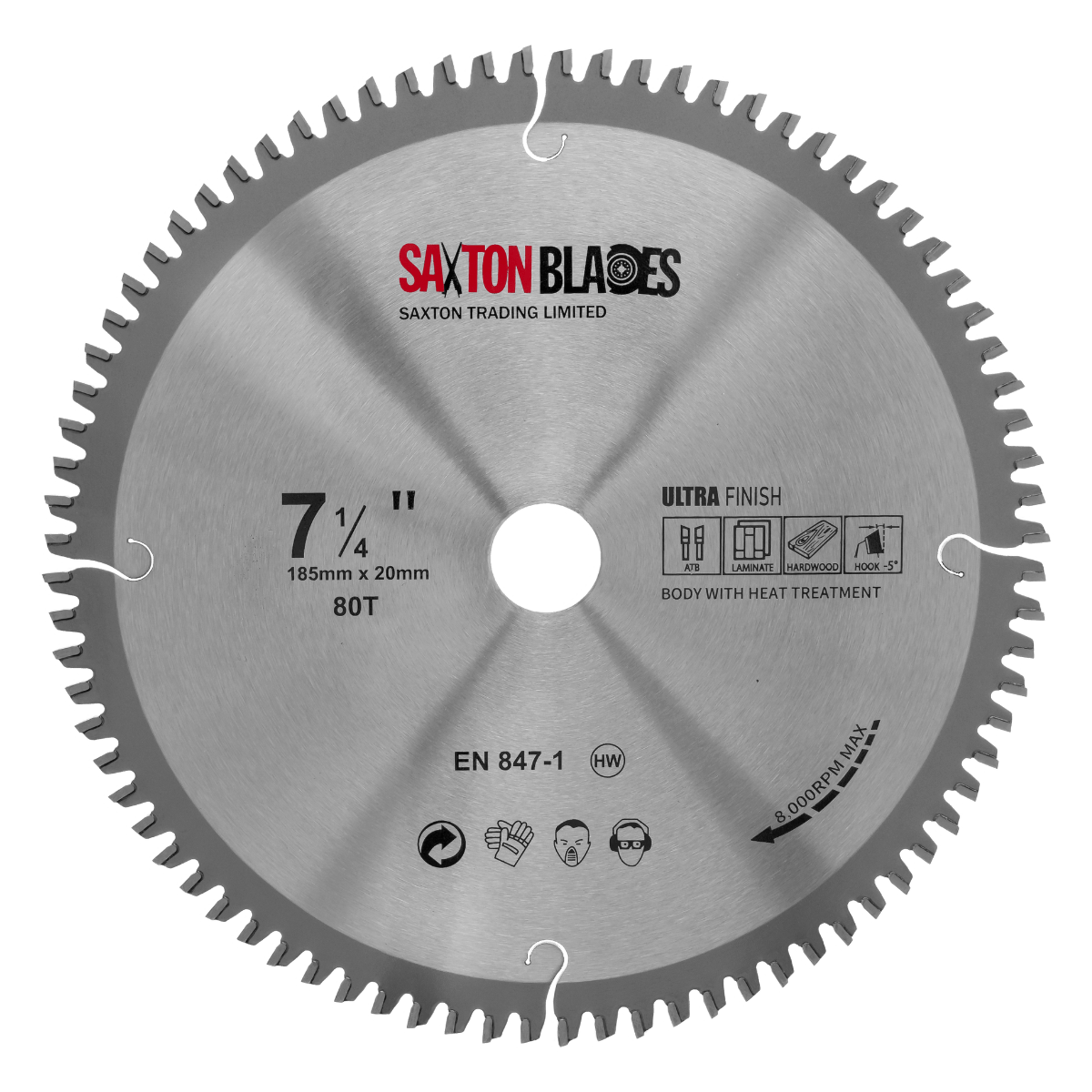 - [DIMENSIONS] - 185mm Diameter - 80 teeth (-5° rake / hook) - 20mm bore (16mm reduction ring included) - 2.4mm Kerf (thickness of cut)