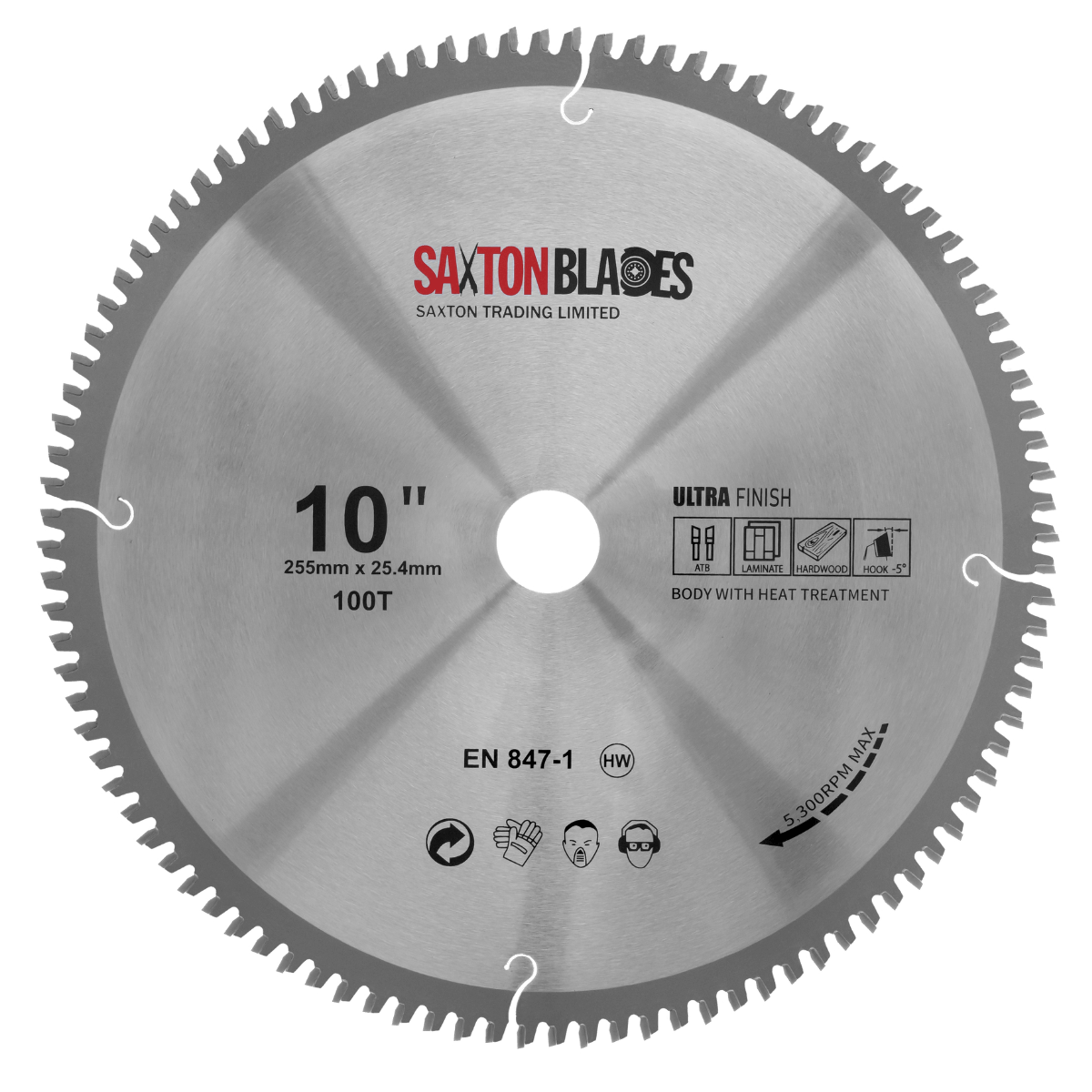 - [DIMENSIONS] - 255mm Diameter - 100 teeth (-5° rake / hook) - 25.4mm bore - 2.6mm Kerf (thickness of cut)